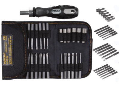 Отвертка с реверсом + насадки ¼" 27шт CrV
